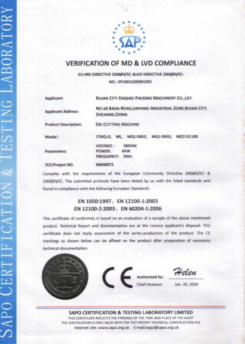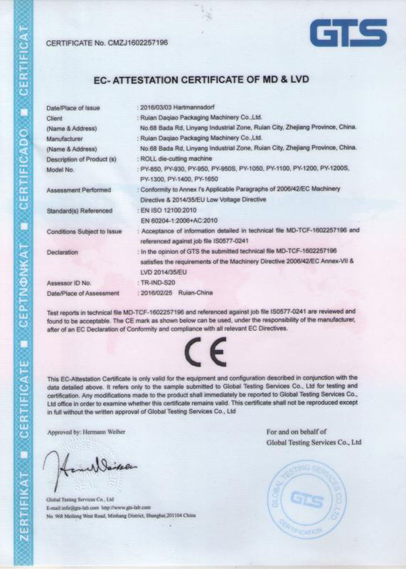 中國(guó)·瑞安市大橋包裝機(jī)械有限公司成立于2002年,是一家集科研、制造、銷售及服務(wù)為一體的高新技術(shù)企業(yè)。公司專業(yè)生產(chǎn)全清廢卷筒平壓平模切機(jī)、高速卷筒平壓平模切機(jī)、全自動(dòng)立體紙盒成型機(jī)(上膠和熱粘) 、紙杯(碗)機(jī)、紙盤機(jī)等紙容器自動(dòng)化設(shè)備。自成立以來,公司不斷深化產(chǎn)品生產(chǎn)線,對(duì)產(chǎn)品精益求精,取得數(shù)十項(xiàng)發(fā)明和實(shí)用新型專利,全面通過歐盟CE質(zhì)量安全認(rèn)證。榮獲得省市科技(創(chuàng)新)型企業(yè),國(guó)家高新技術(shù)企業(yè)。